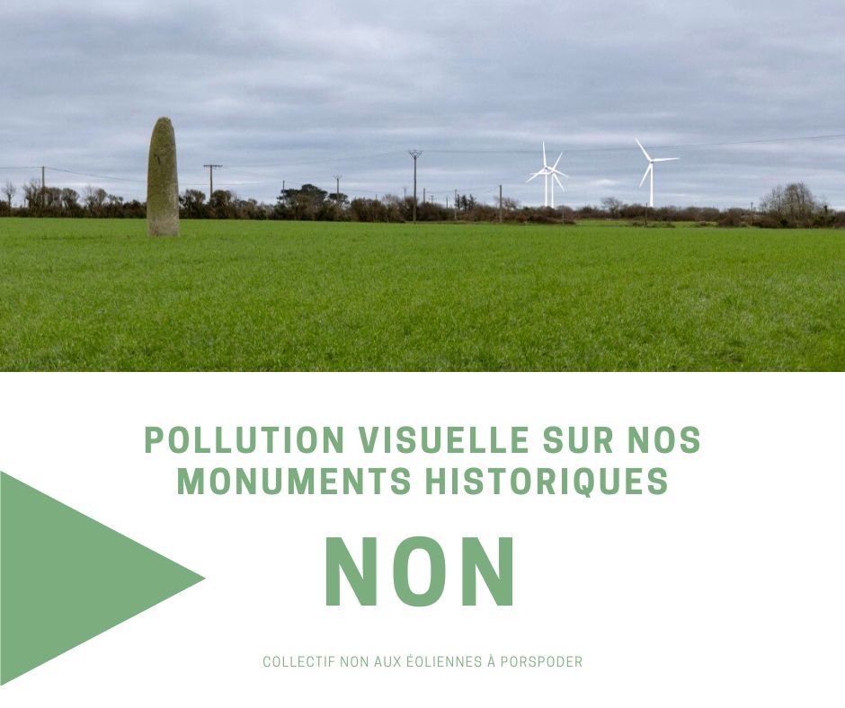 Situées à seulement 1800 mètres du bord de mer, au beau milieu de sept mégalithes classés monuments historiques, et hautes d'environ 140 mètres (le double des éoliennes que l'on peut voir actuellement en Pays d'Iroise et le triple du mât de mesure installé sur site), ces éoliennes auraient un impact catastrophique sur les paysages de Porspoder, Lanildut, Brélès, Landunvez et au-delà.