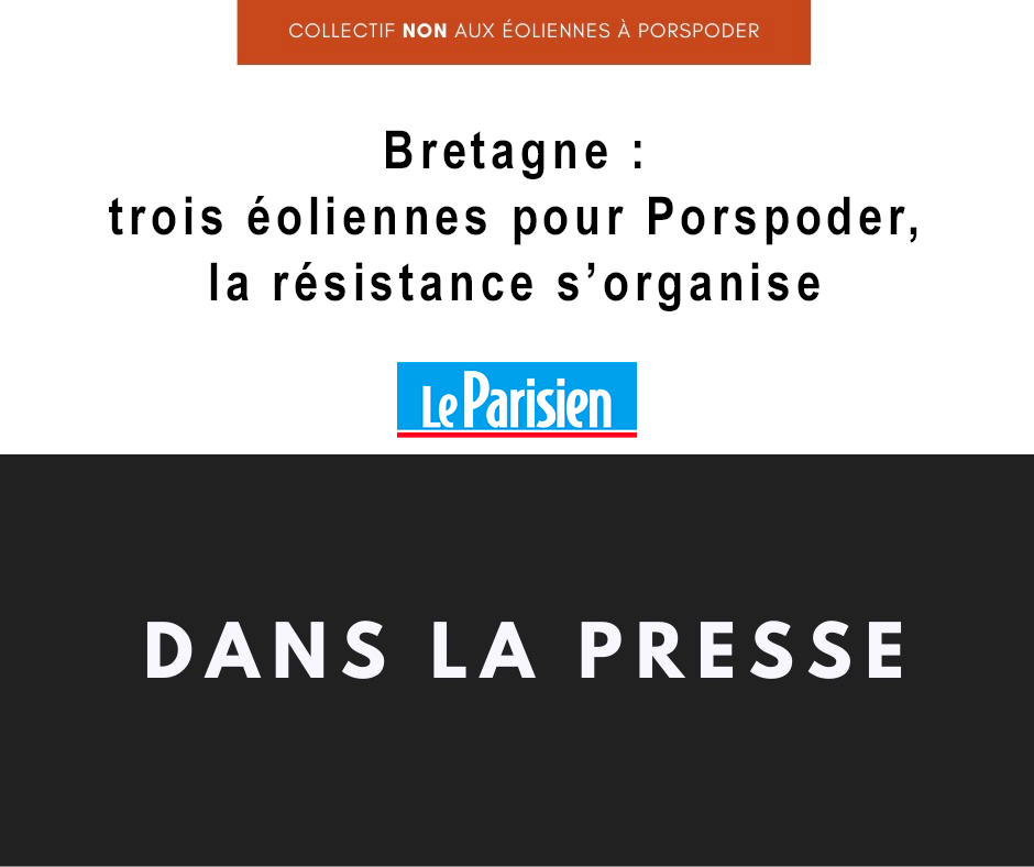 Pour manifester votre opposition au projet éolien de Porspoder, nous vous invitons à signer la pétition ouverte sur le site change.org « NON AUX EOLIENNES A PORSPODER » ici.